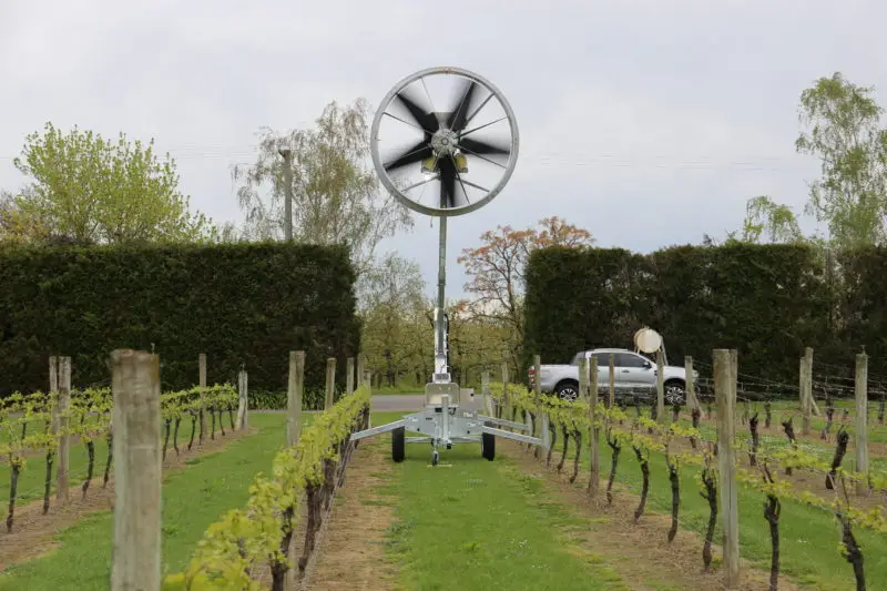 The unique design of this fan can provide effective frost protection for all crops, even when grown in valleys or on hills. The ability to angle the Tow and Blow impeller and horizontally oscillate the fan head for these applications allows for exceptional versatility and completely sets this machine apart from traditional fans.
